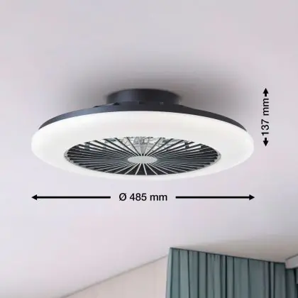 Brilliant Salerno Ventilator Plastik Metall Schwarz 36W 4700lm - 830-865 CCT+RGB | 485mm - Fernsteuerung Dimmbar
