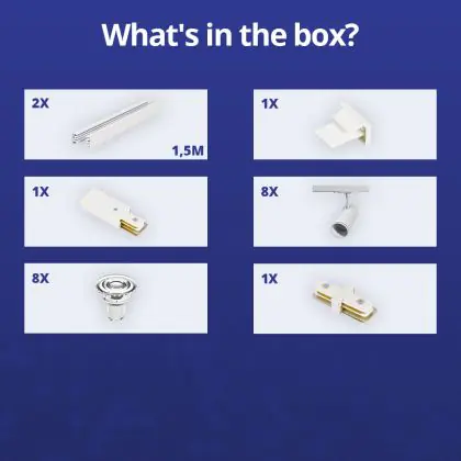 Komplettset 1-Phasen Rail 3 Meter Weiß | incl. 8x Spot + GU10 2700K 3W Dimmbar + Abschlusskappe, Stromanschluss und I-Verbinder