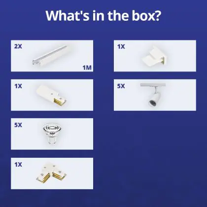 Komplettset 1-Phasen Rail L 1 x 1 Meter Weiß | incl. 5x Spot + GU10 2700K 3W Dimmbar + 1 x 1 Meter Abschlusskappe, Stromanschluss und L -Verbinder