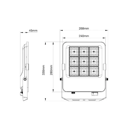 | Herstellername | Budgetlight LED Floodlight Beam V2.0 80W 11200lm 90D - 830-840-865 CCT | IP66 – Symmetrical | |