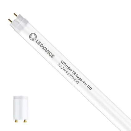 Bei der Ledvance LED Röhre 150cm | 3000K 22.2W - Superior UO handelt es sich um eine energieeffiziente LED-Röhre. Sie ersetzt Ihre konventionelle Leuchtstoffröhre mit 58W. Die Röhre ist 1513 mm lang und hat die Farbtemperatur 3000K - Warmweiss. Die durchschnittliche Lebensdauer der LED-Röhre beläuft sich auf 75000 Stunden. Wir bieten Ihnen für dieses Produkt eine Garantie von 5 Jahre an.
