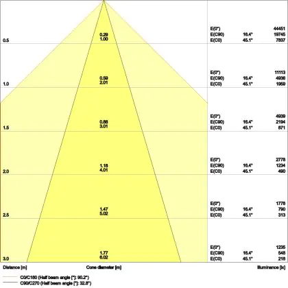 Der Abstrahlwinkel bezeichnet den Winkel, in dem das Licht aus der Lichtquelle ausgestrahlt wird. Er wird in Grad (D) angegeben. Je geringer die Gradzahl des Abstrahlwinkels ist, desto kleiner ist auch der Durchmesser des Lichtkegels, den die Lichtquelle produziert.