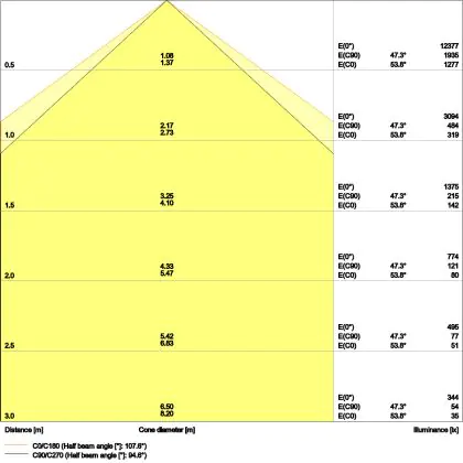 Der Abstrahlwinkel bezeichnet den Winkel, in dem das Licht aus der Lichtquelle ausgestrahlt wird. Er wird in Grad (D) angegeben. Je geringer die Gradzahl des Abstrahlwinkels ist, desto kleiner ist auch der Durchmesser des Lichtkegels, den die Lichtquelle produziert.