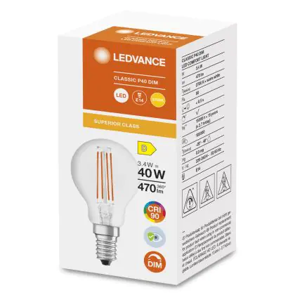Ledvance Superior Classic LED E14 Kugel Fadenlampe Klar 3.4W 470lm - 927 | Dimmbar - Höchste Farbwiedergabe