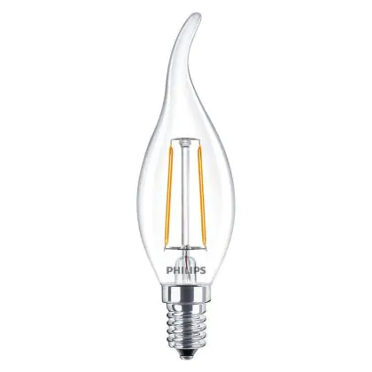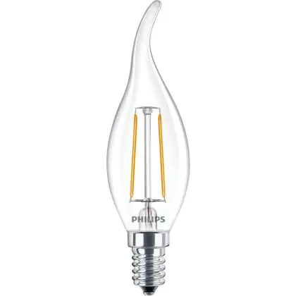 Philips Corepro LED Kerze E14 Gebogene Spitze Fadenlampe Klar 2W 250lm - 827 | Ersatz für 25W