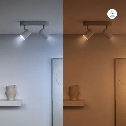 4. Dim to Warm: Durch Dimmen wird das Licht wärmer (gelber). Je stärker Sie dimmen, desto wärmer wird die Farbe.