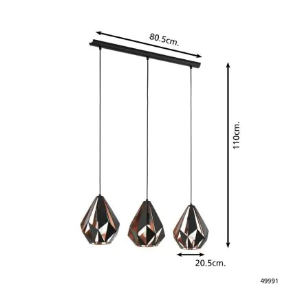 Eglo Suspension Luminaire Carlton 1 Noir, Cuivre | Convient pour 3x E27