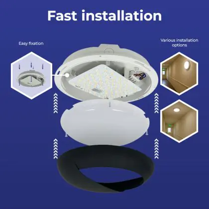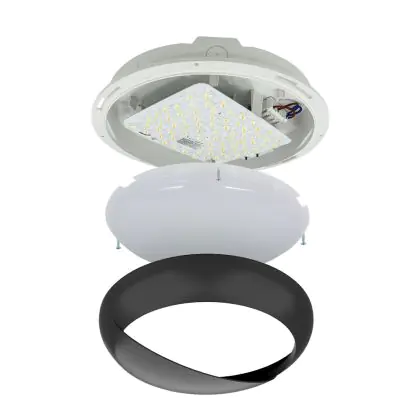 Le Hublot LED Pro V2 Blanc 12/16/20W 2400lm - 830-840-865 CCT | 325mm - IP65 - Détresse 3H + Visière Cercle Noir peut très bien être appliqué au mur qu’au plafond. Ce hublot est un luminaire étanche principalement installé dans les lieux de passages. Avec sa technologie LED Intégré, le hublot Budgetlight à un faible impact sur l’environnement et à une durée de vie pouvant tenir jusqu’à 100000 heures. Ce hublot peut également être installé en extérieur et est capable de supporter des températures extrêmes.  Il offre une couleur de lumière de et un flux lumineux de 2400 Lm.