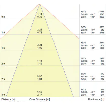 Un angle de diffusion est également appelé angle de rayonnement et indique l'angle du faisceau lumineux provenant d'une source lumineuse. Plus l'angle de diffusion en degrés (D) est petit, plus le faisceau est étroit. Vous voulez en savoir plus? Alors lisez notre blog.