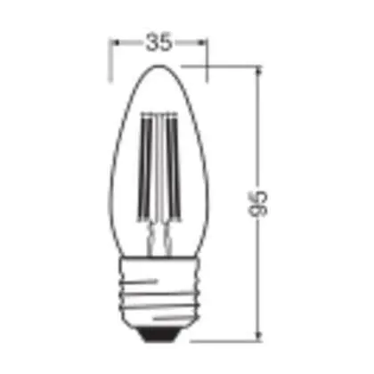 Description Ledvance Classic LED E27 Bougie Filament Claire 3.4W 470lm - 827 Blanc Très Chaud | Dimmable - Remplacement 40W