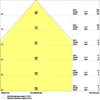 Le code couleur se compose de l'indice de rendu des couleurs (IRC) et de la température de couleur (Kelvin). Le premier chiffre indique le rendu des couleurs (1 = très mauvais rendu des couleurs, 9 = meilleure authenticité des couleurs). Le deuxième et troisième chiffre indiquent la température de la couleur. Exemple : Le code couleur "830" indique que la lampe a un bon rendu des couleurs (8) et une couleur de lumière blanche chaude (30 = 3000K). |