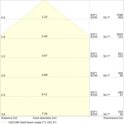 • Angle de diffusion: 100 °