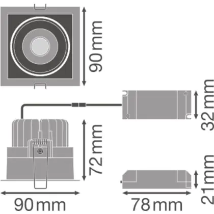 Description Ledvance Spot LED Carré Foncélight inclinable Blanc 8W 650lm 36D - 830 Blanc Chaud | Diamètre 83mm