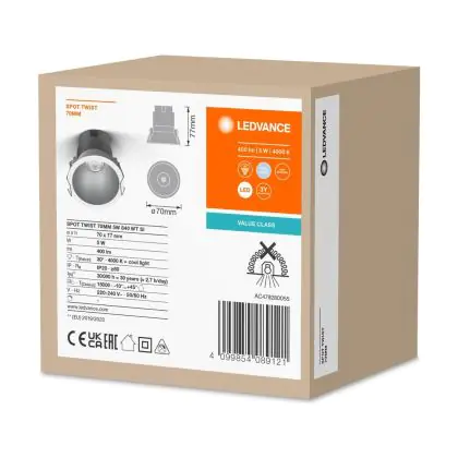 | Nom du fabricant | LED SPOT RECESS TWIST PRO 70mm 5W 4000K White Silver | |
