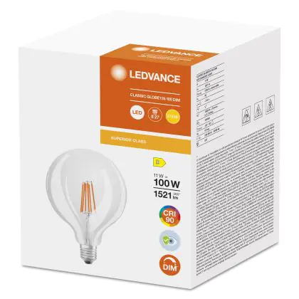 Description Ledvance Superior Classic LED E27 Globe Filament Claire 11W 1521lm - 927 | Meilleur rendu de couleur