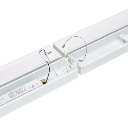 La réglette LED, Philips Réglette LED CoreLine BN126C 44W 4800lm - 830 | 150cm - 1x Câblage Traversant est conçue pour remplacer les réglettes TL-D traditionnelles et permettant d’économiser jusqu’à 50% d’énergie. Très souvent utilisé pour l’éclairage d’entrepôts, d’usines, de parking et d’autres grands espaces extérieurs. Très simple d’installation, cette réglette de 150cm peut se fixer au plafond et au mur et projette 3000K - Blanc Chaud, comme couleur de lumière. La Philips Réglette LED CoreLine BN126C 44W 4800lm - 830 | 150cm - 1x Câblage Traversant dispose d’un indice de protection IP20 à l’eau et la poussière et d’une résistance aux chocs IK04.