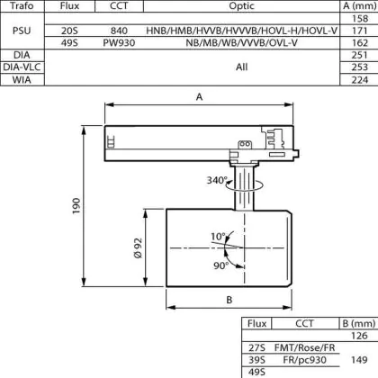 Description Philips Spot LED Sur Rail GreenSpace Evo Projecteur Blanc 20.5W 2700lm 41x80D - 830