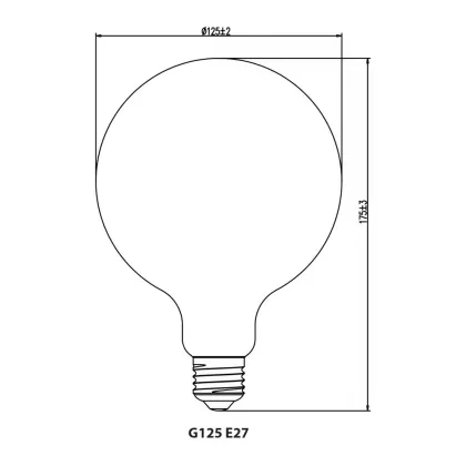 Description Pro LED E27 Globe Filament Ambre 125mm 8W 710lm - 822 | Dimmable - Remplacement 60W