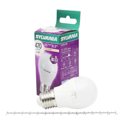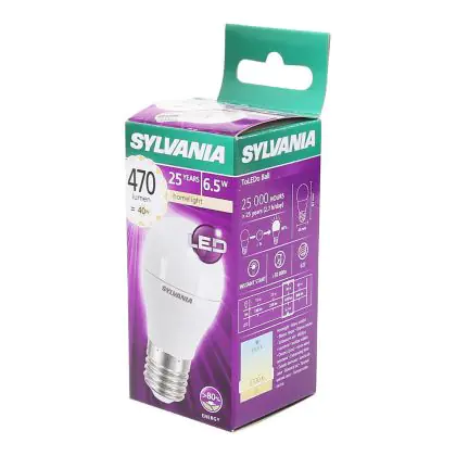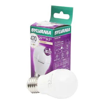 Cette ampoule Sylvania Retro ToLEDo E27 Boule Dépolie 6.5W 470lm - 827 | Remplacement 40W avec son efficacité lumineuse de lumen par watt vous permettra de profiter d’un éclairage de qualité. Avec sa durée de vie de 25000 heures, vous n’aurez pas à vous soucier de son remplacement avant quelques années.