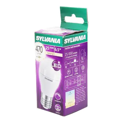 Cette ampoule Sylvania ToLEDo E27 Boule Dépolie 6.5W 470lm - 827 | Remplacement 60W avec son efficacité lumineuse de lumen par watt vous permettra de profiter d’un éclairage de qualité. Avec sa durée de vie de 25000 heures, vous n’aurez pas à vous soucier de son remplacement avant quelques années.